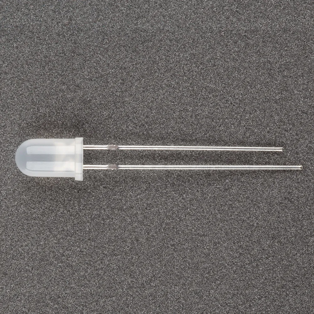 Поставка под заказ от 5000 шт. Выводной круглый светодиод, d=5 мм, белая матовая линза. Цвет свечения красный (625-630 нм). Угол излучения 60°. Сила света Iv=500-1000 мкд при If=20 мА. VF=1.8-2.3 В. Рекомендуемый постоянный рабочий максимальный ток 16-17 мА.