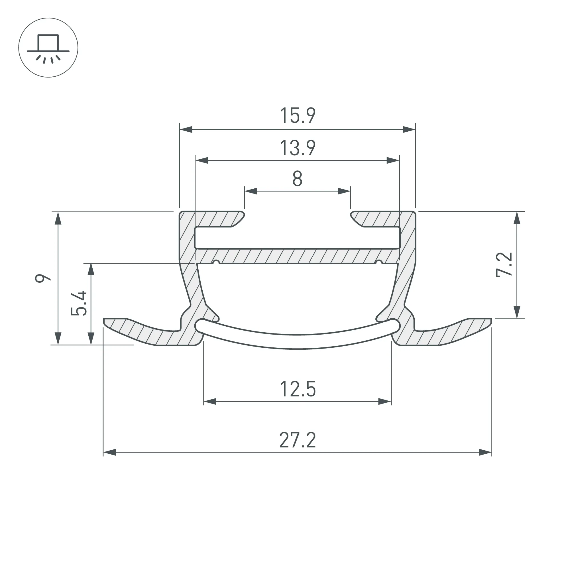 Алюминиевый анодированный профиль для светодиодных лент и линеек. Габаритные размеры (L×W×H): 2000x27,2x9 мм. Ширина площадки для ленты 13,9 мм. Установка в паз шириной 16 мм. Экраны, заглушки и другие аксессуары приобретаются отдельно. Цена за 1 метр.