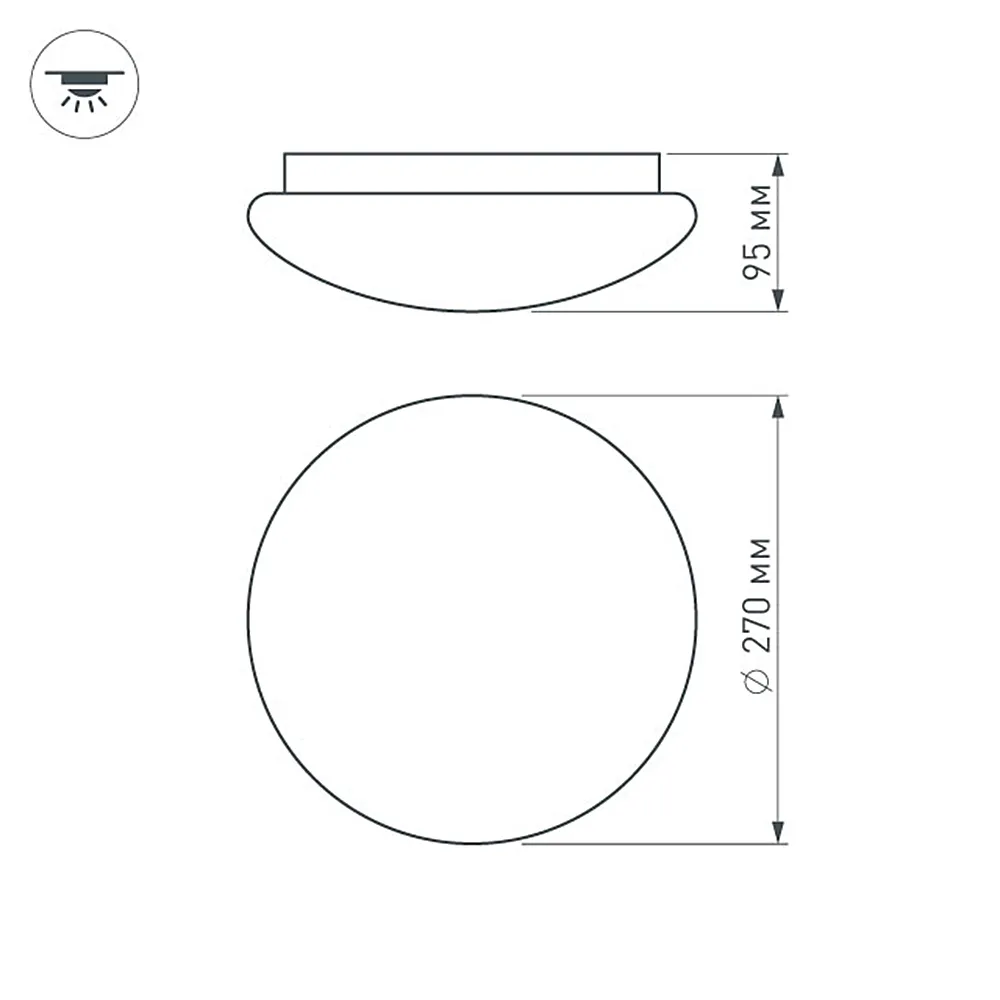 Накладной светильник 13Вт / БЕЛЫЙ 6000K / 950лм / 120°. IP20.Накладной. Размер Ф270 x 95мм. Пластиковый объёмный молочный рассеиватель. Питание от сети 220VAC. Энергосберегающее освещение для квартир, подъездов, домов.