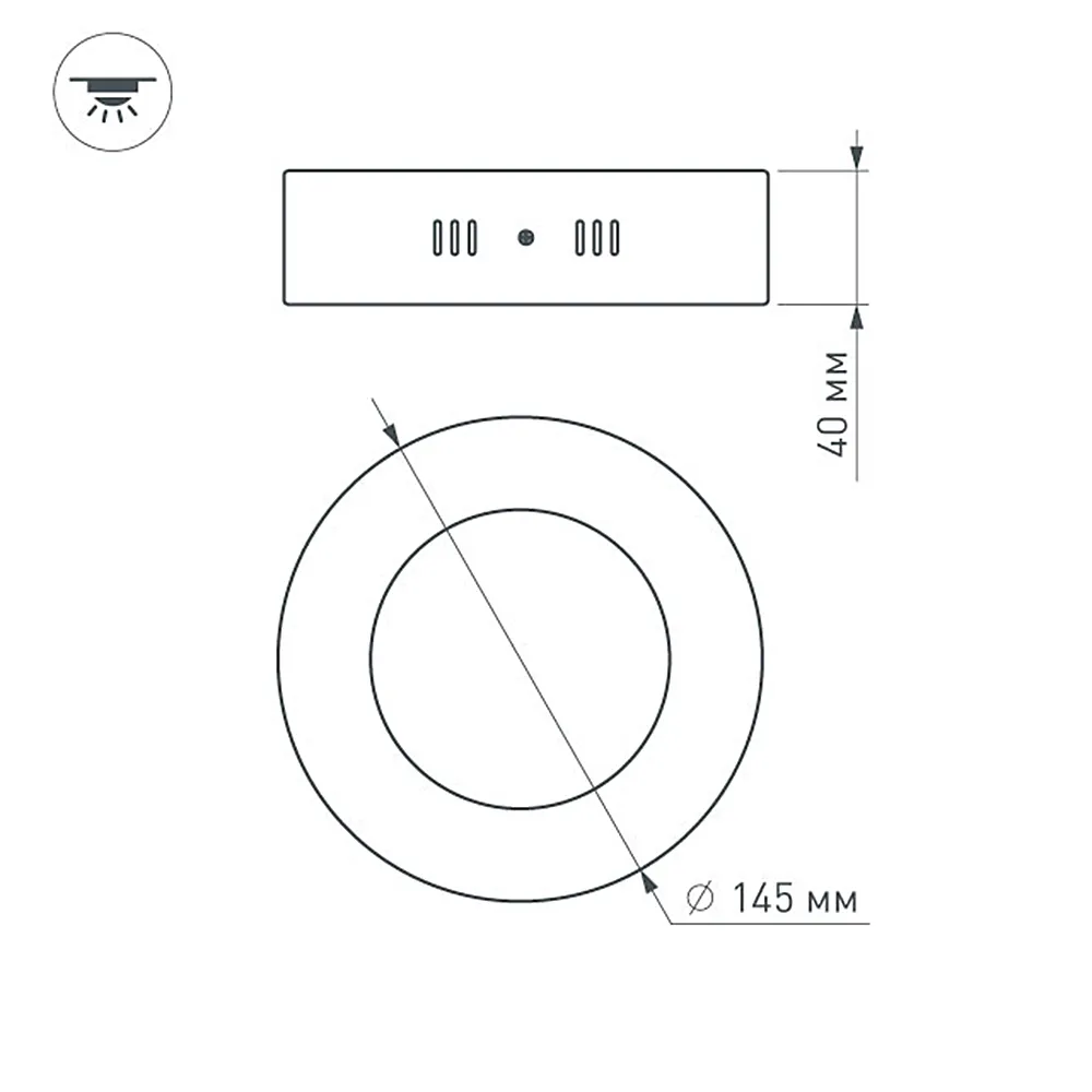 Накладная круглая панель 9Вт, цвет ДНЕВНОЙ БЕЛЫЙ 4000K / 570 лм / 120°/ CRI(Ra)>80. Размер Ф145 x 40мм. Питание от сети AC 100-240V, драйвер в комплекте (арт.019618, 18-36V, 300mA, 9W).