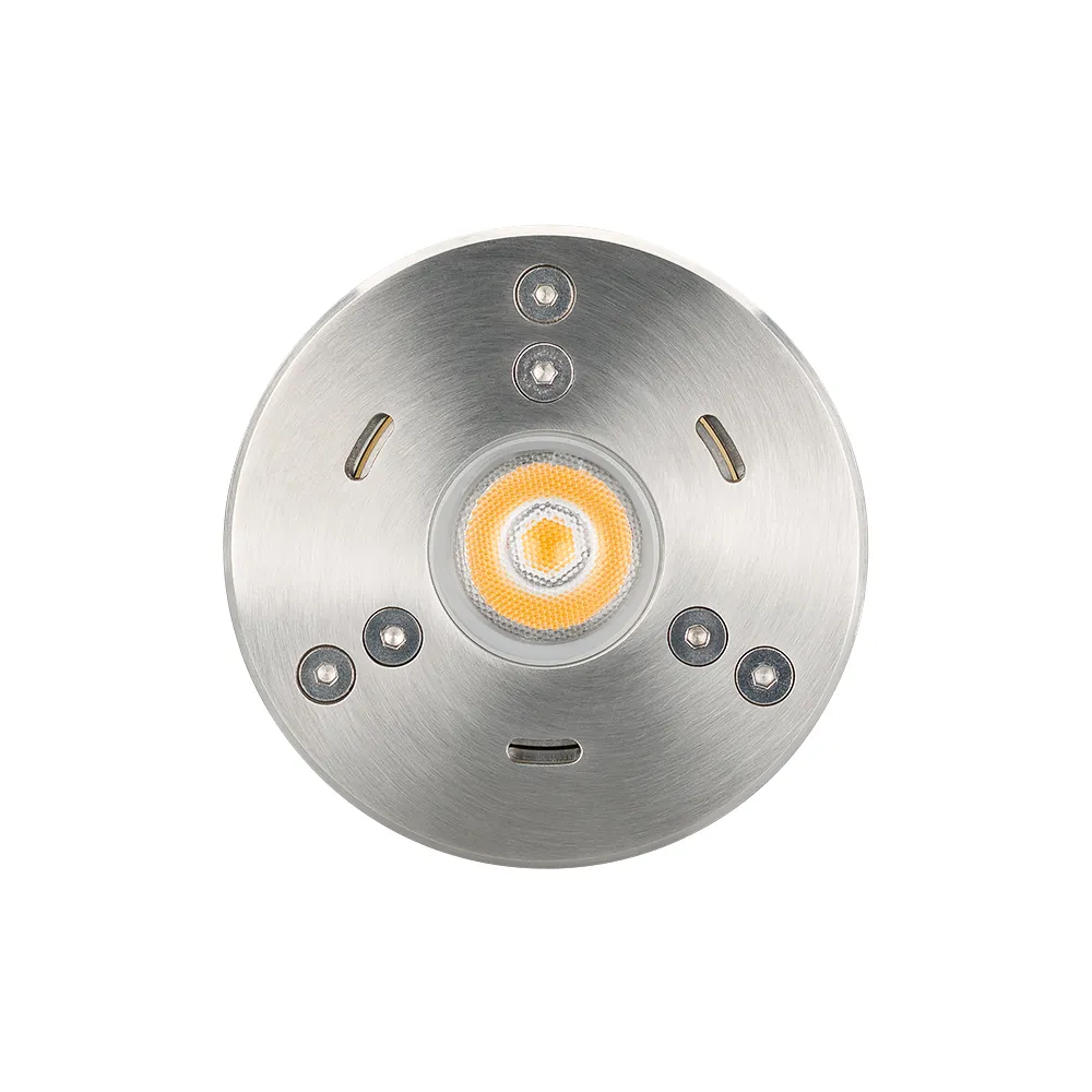 Подводный светодиодный светильник, мощность 7Вт, угол освещения 25°. Цвет ТЕПЛЫЙ 3000К, световой поток 560-600лм, CRI>80. Влагозащищенный корпус IP68 - серебристая нержавеющая сталь 316, экран из закаленного стекла. Питание DC12В, мощность 7Вт. Размеры DxH Ø84х48мм. Установка в отверстие DxH Ø74х106мм В комплекте 5м провод. Максимальная глубина установки под водой 2м. ВНИМАНИЕ! Светильник не поддерживает регулирование светового потока ШИМ.