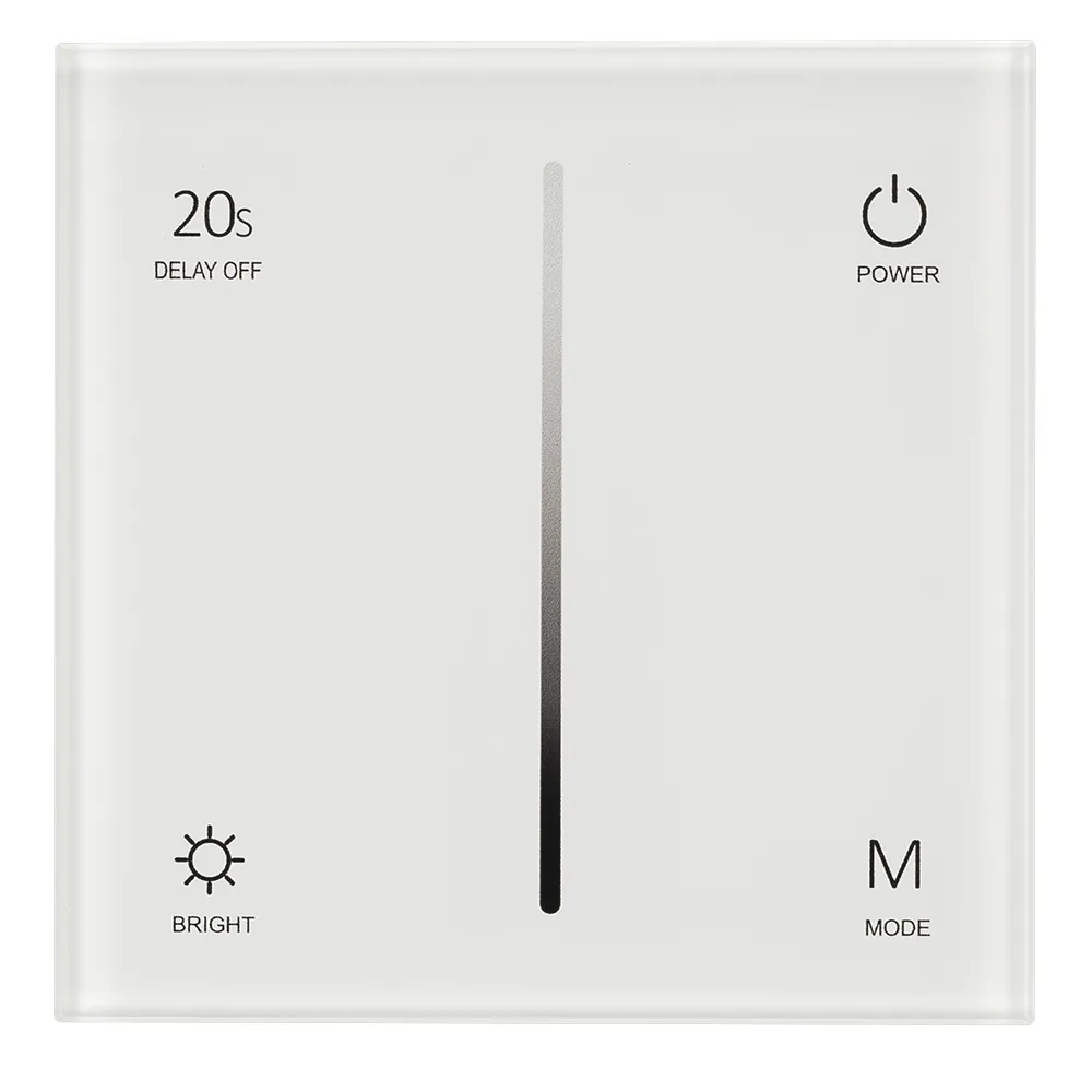 Встраиваемая сенсорная панель, цвет белый. Материал - стекло. Выходной сигнал 0/1-10V. Управление яркостью с сенсорной полосы. 1 зона управления. Питание 230V, входное напряжение 86-265VAC. Габариты 86х86х35 мм. Панель совместима с 0/1-10V диммерами.