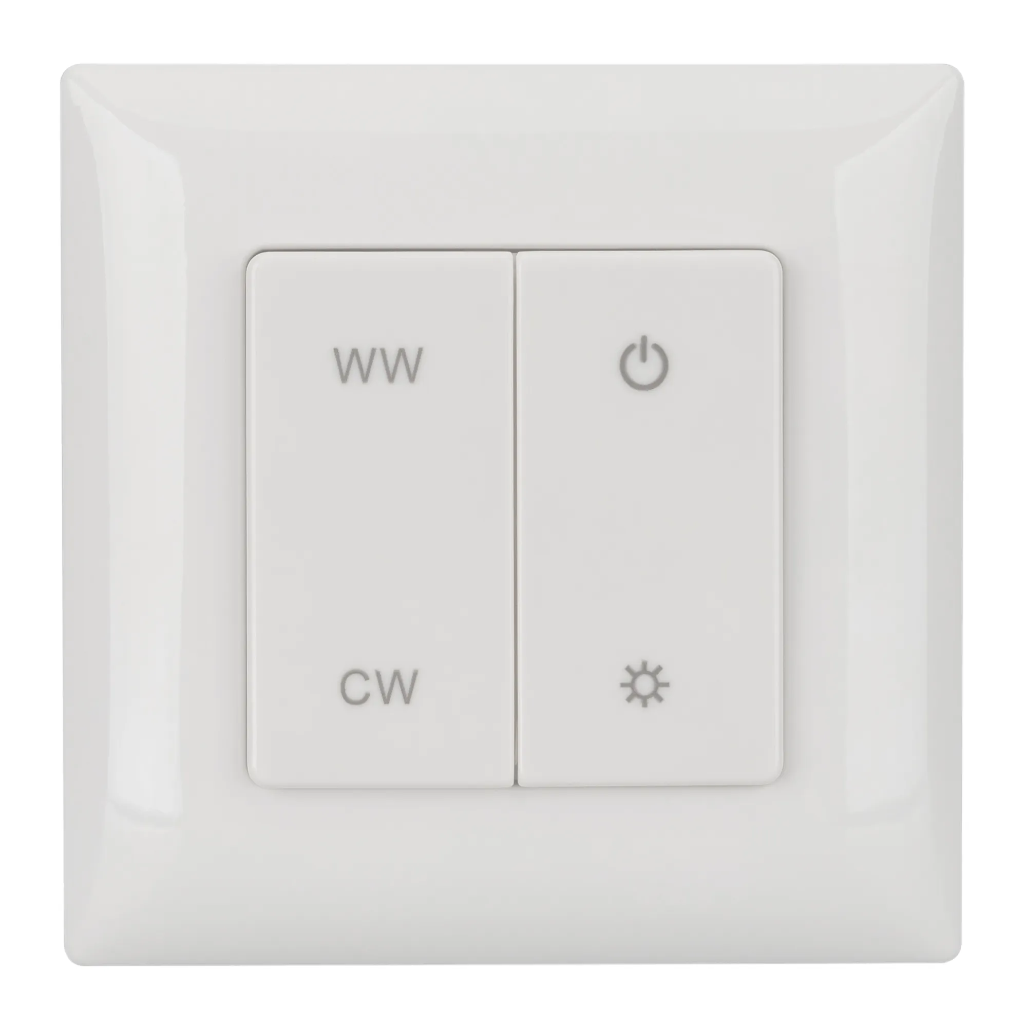 Накладная кнопочная панель 2.4 ГГц, цвет белый. Материал - пластик. Для управления мультибелыми (MIX) источниками света (ШИМ), 1 зона управления. Питание/рабочее напряжение 3VDC от батарейки CR2032. Габариты 86х86х14 мм. Совместима с контроллерами SMART.