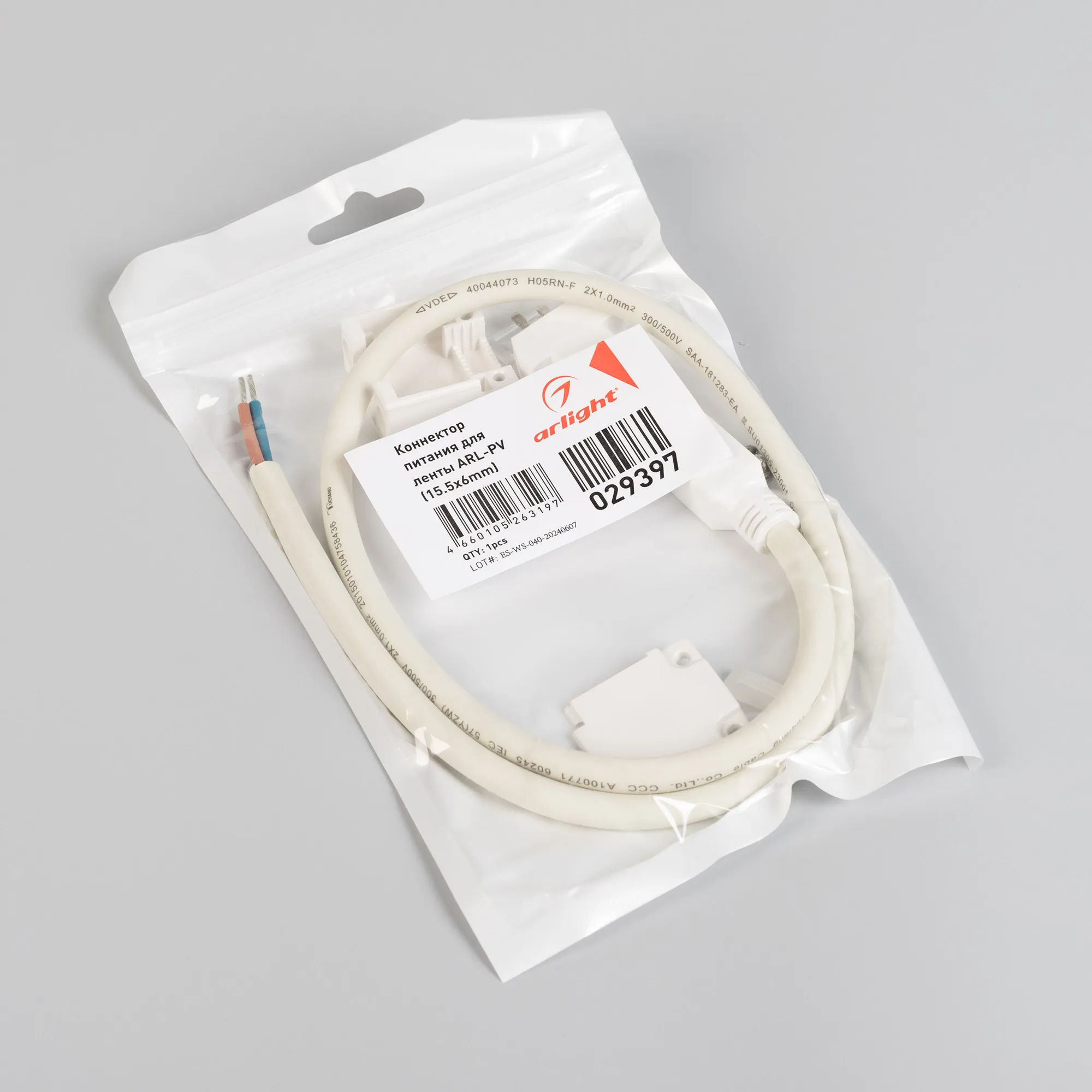 Герметичный коннектор для подключения питания светодиодных лент ARL-50000PV и ARL-10000PV , тип WP2, к сети 230V. Корпус IP65. Провод 600мм, 2х1мм². Максимальный допустимый ток 3А. Цена за 1шт.