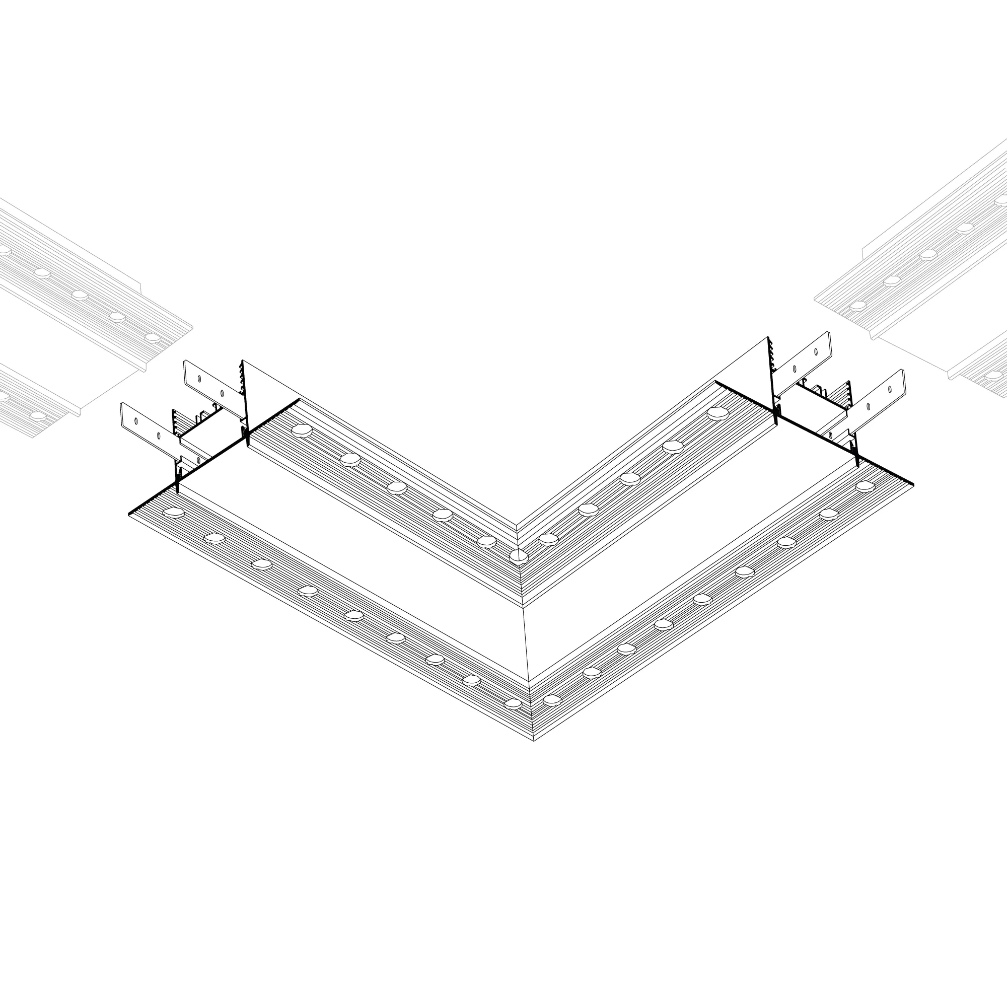 Угол в сборе, для профиля SL-LINIA45-FANTOM. В комплекте угол с экраном, соединители, винты, шестигранный ключ.