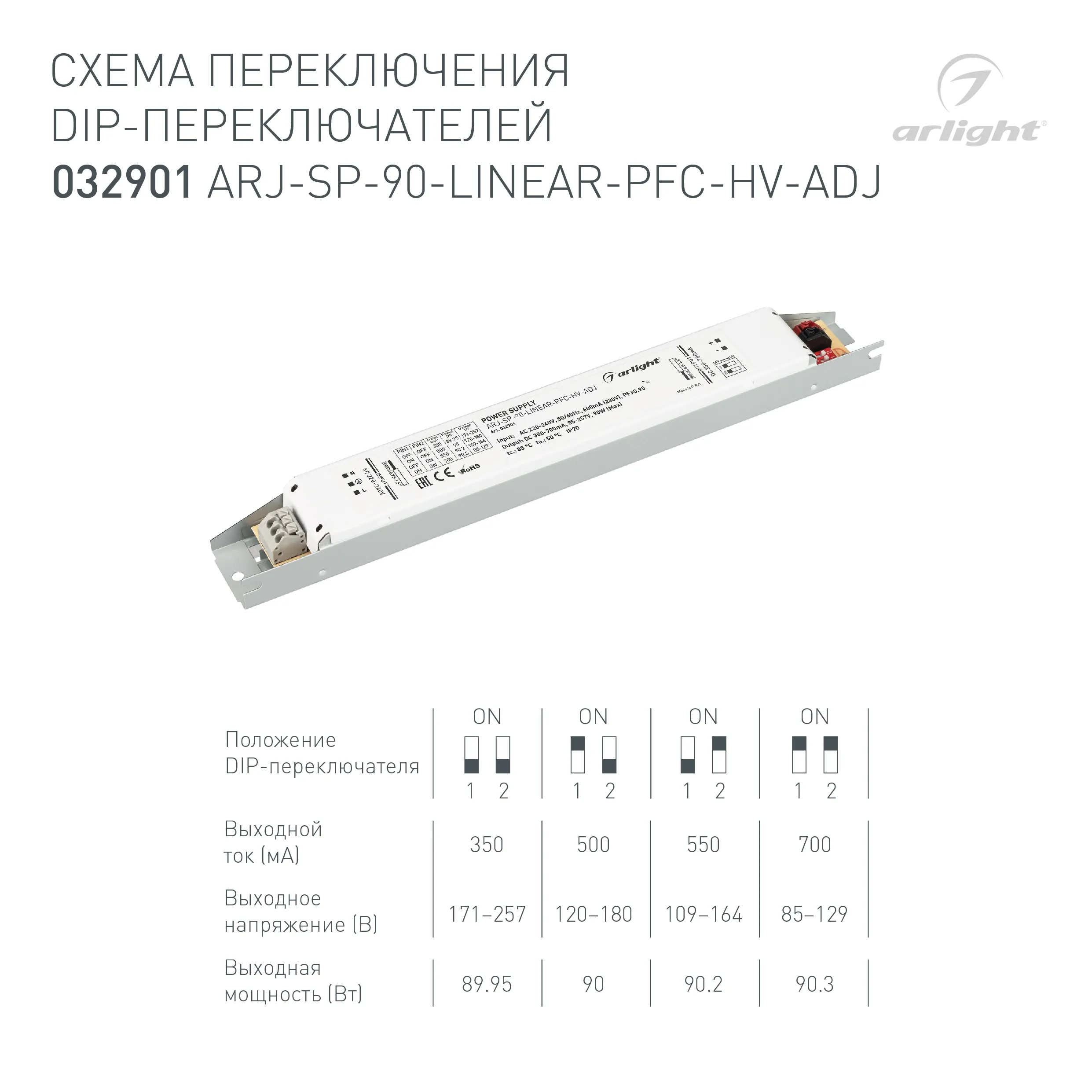 Блок питания ARJ-SP-90-LINEAR-PFC-HV-ADJ (90W, 350-700mA) (Arlight, IP20 Металл, 5 лет)