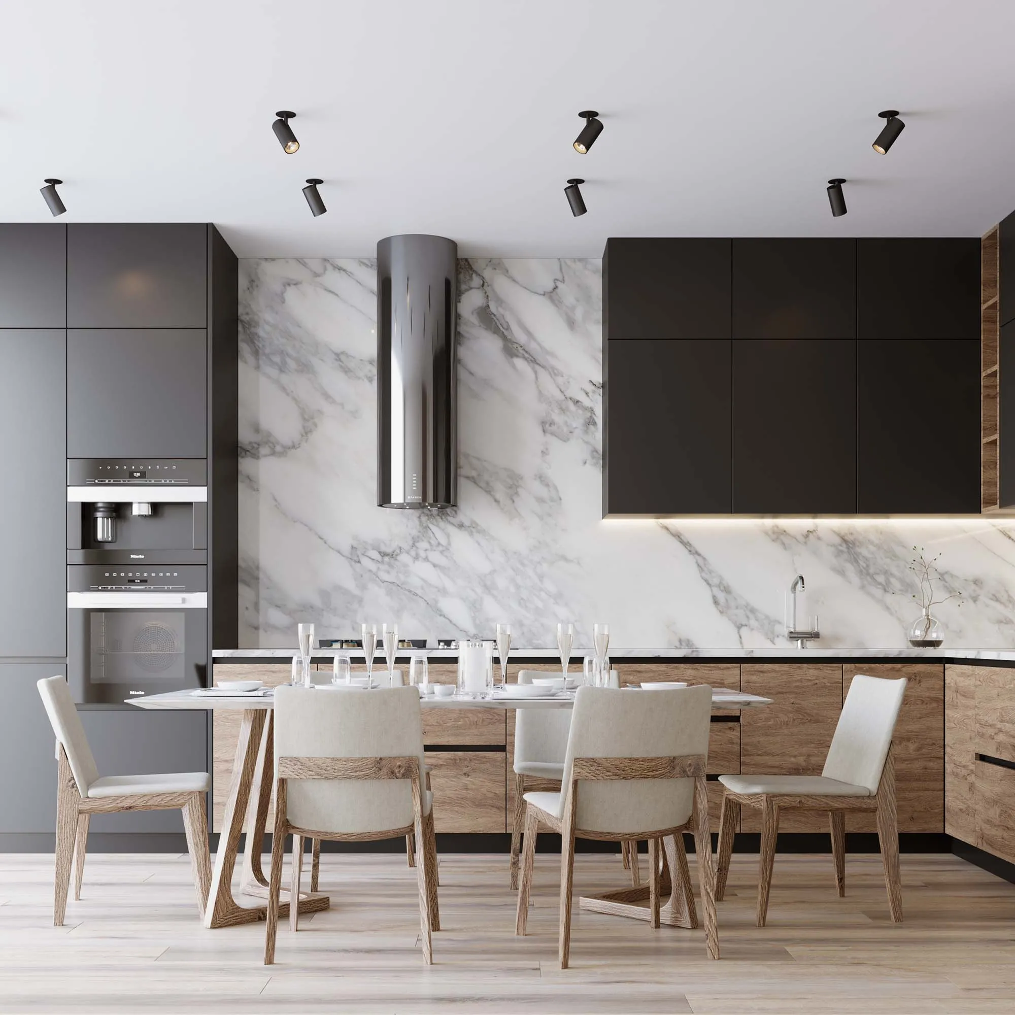 Встраиваемый поворотный светильник для потолка. Мощность 9 Вт, св. поток 666 лм, 74 лм/Вт, теплый 3000 K, CRI>90, угол 25°, напряжение питания 230 В. Белый корпус из алюминия, линза PC, степень защиты IP20. Размер: диаметр 55 мм, длина 110 мм, высота 80 мм. Угол поворота 350°, угол наклона 90°. Монтаж встраиваемый, установочное отверстие диаметр 60 мм, глубина 30 мм. Драйвер 30-45 В, 220 мА, пульсация <5%.
