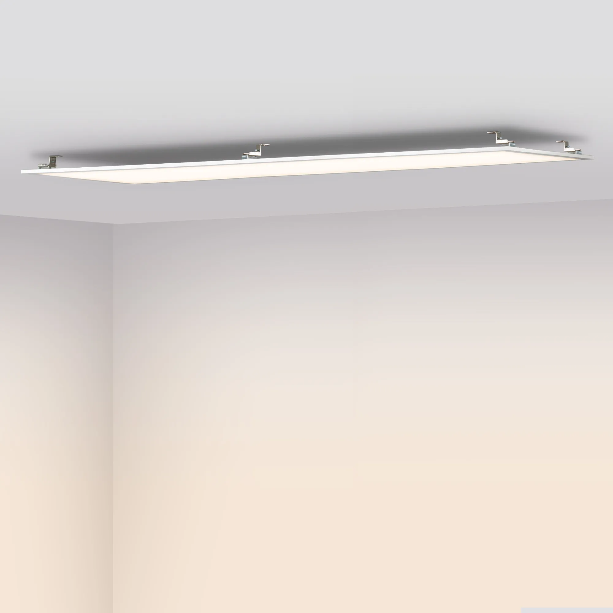 Светодиодная панель с торцевой заcветкой. Мощность 40 Вт, св. поток 3600 лм, 90 лм/Вт, теплый 3000 K, CRI>80, угол 120°, напряжение питания 230 В. Белый квадратный корпус из алюминия, экран PS, LGP PMMA, степень защиты IP40. Размер (Д×Ш×В) 1195×295×10,4 мм. Монтаж встраиваемый, установочное отверстие длина 1175 мм, ширина 275 мм.. Драйвер 27-38 В, 1050 мА, пульсация <5%.