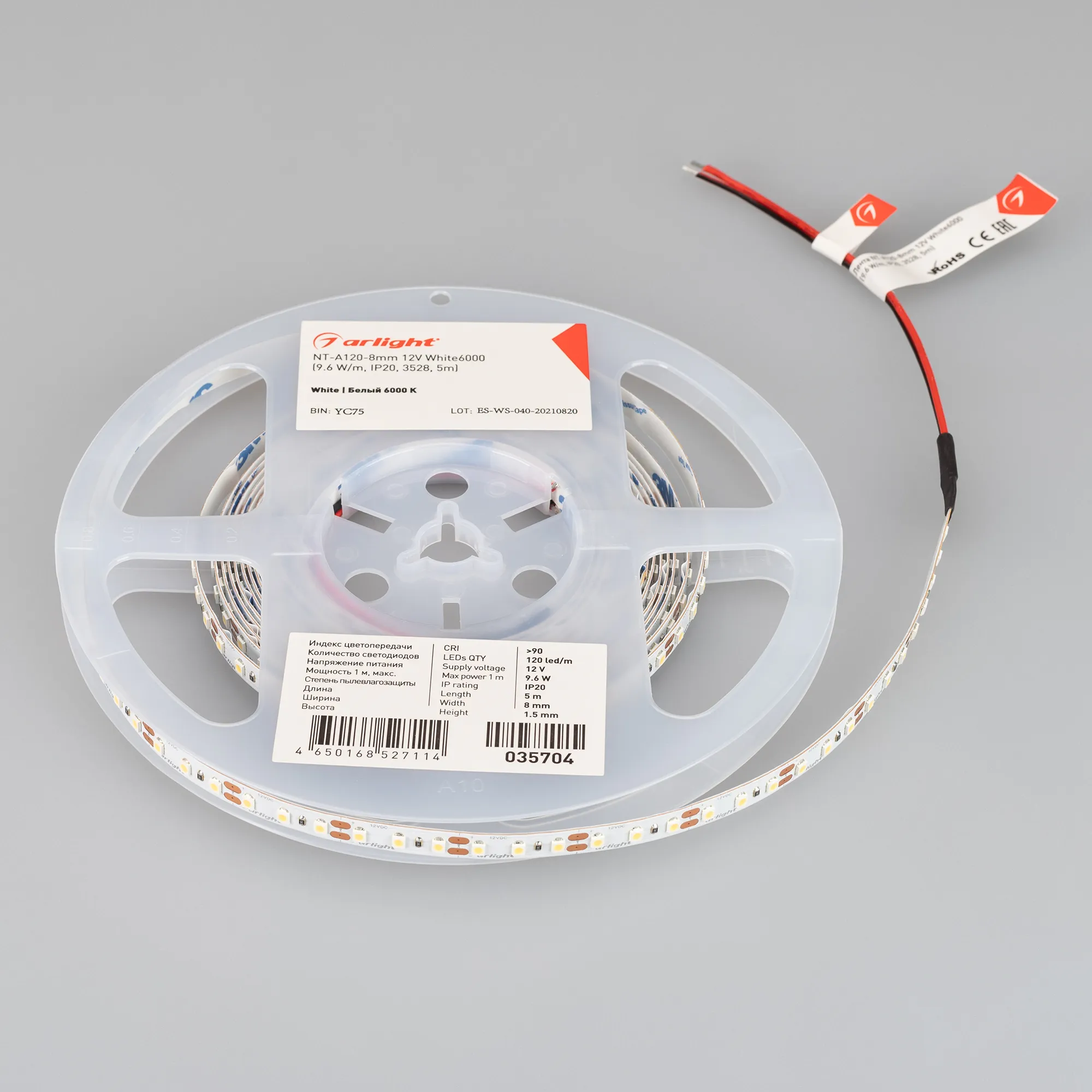 Лента светодиодная NT-A120-8mm 12V White6000 (9.6 W/m, IP20, 3528, 5m) (Arlight, Открытый)