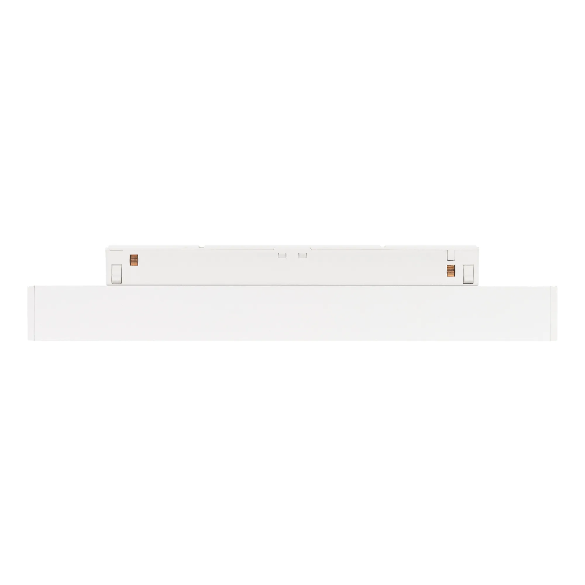 Светильник для магнитных треков MAG-ORIENT шириной 26 мм. Мощность 8 Вт, св. поток 440 лм, 55 лм/Вт, теплый 3000 K, CRI>90, угол24°, напряжение питания 48 В. Белый прямоугольный корпус из металл, экран поликарбонат, степень защиты IP20. Размер: длина 235 мм, ширина 22 мм, высота 42 мм. Монтаж на трек MAG-ORIENT. Пульсация <1%.
