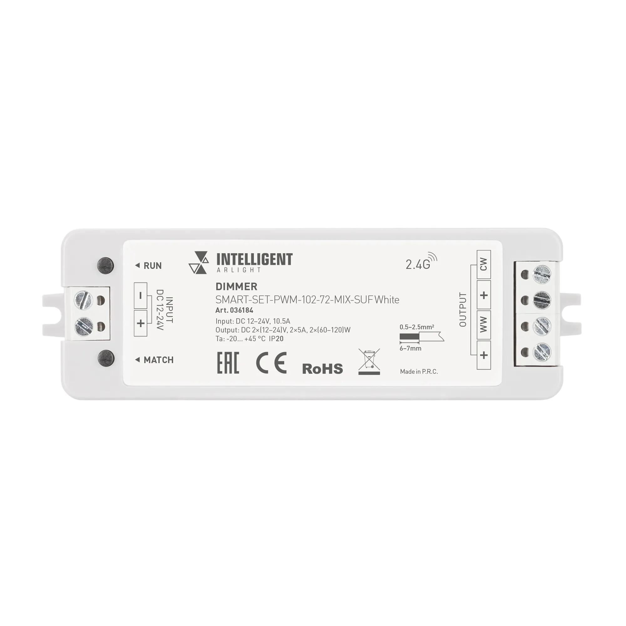В магазине Arled Market Вы можете купить "INTELLIGENT ARLIGHT Диммер SMART-SET-PWM-102-72-MIX-SUF White (12-24V, 2x5A, ПДУ RING 10кн, 2.4G) (IARL, IP20 Пластик, 5 лет)"
