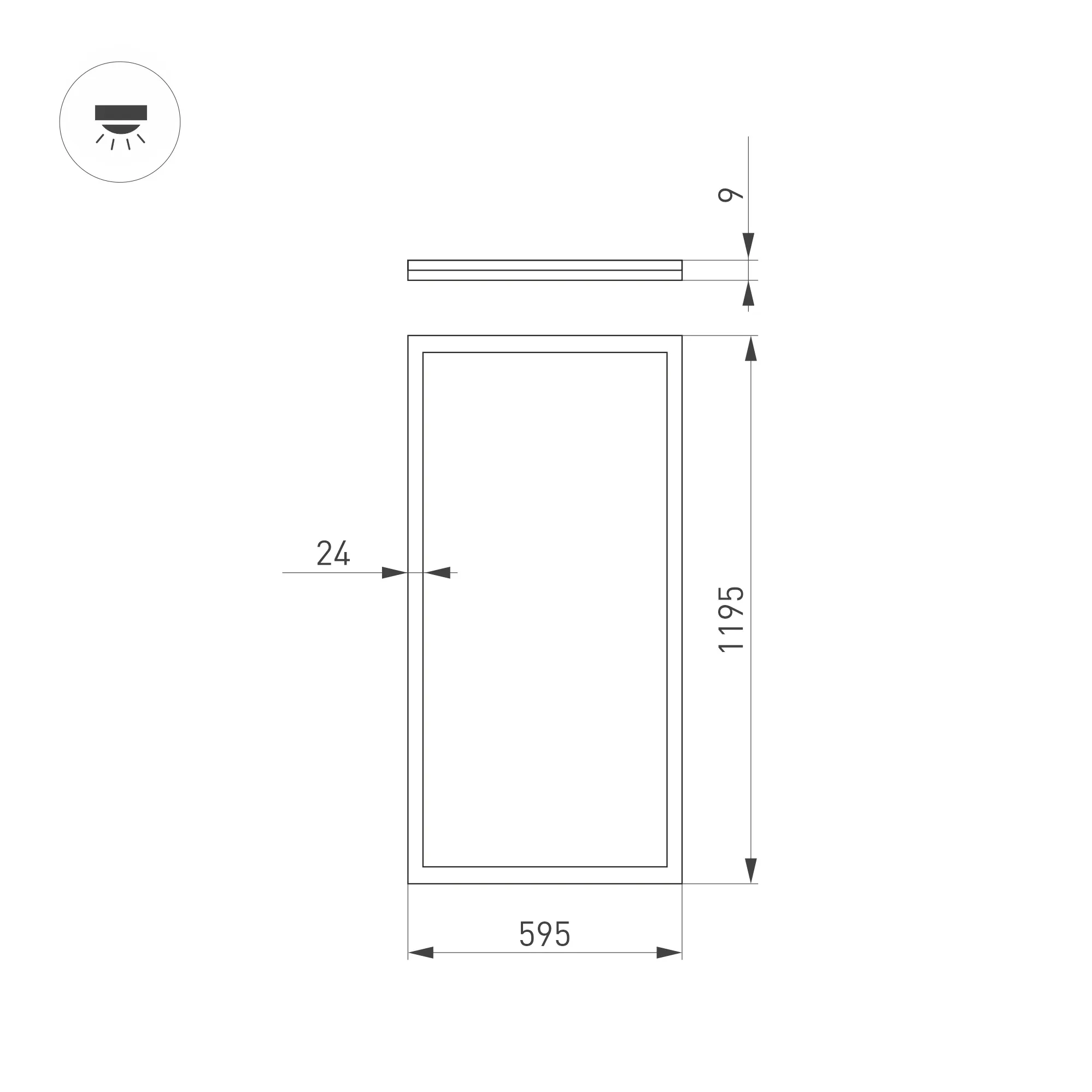 Поставка под заказ от 100 шт. Светодиодная панель с торцевой засветкой (edge-lit). Мощность 60 Вт, св. поток 6000 лм, 100 лм/Вт, белый 6000-6500 K, CRI>90, угол 120°, напряжение питания 230 В. Белый квадратный корпус из алюминия, экран PS, LGP PMMA, степень защиты IP40. Размер: длина 1195 мм, ширина 595 мм, высота 9 мм. Монтаж встраиваемый, установочное отверстие длина 1175 мм, ширина 575 мм. Драйвер 27-42 В, 1500 мА, пульсация <1%.