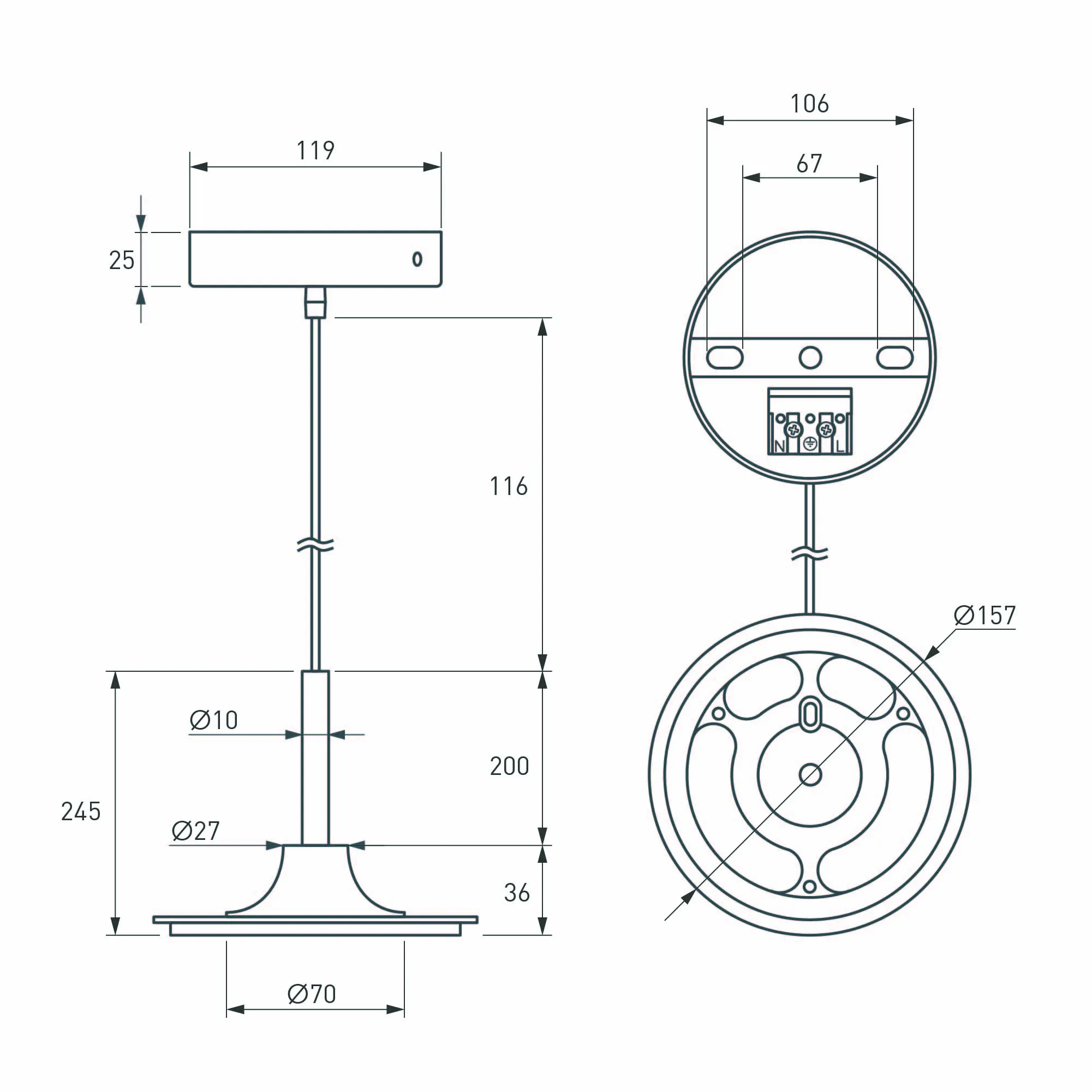Аксессуар регулируемый для подвешивания светильников FLOWER. Длина троса 1400 мм. Диаметр монтажной части 157мм, высота монтажной части 10мм. Высота потолочной чаши 25мм, диаметр 120мм. Цвет чёрный.