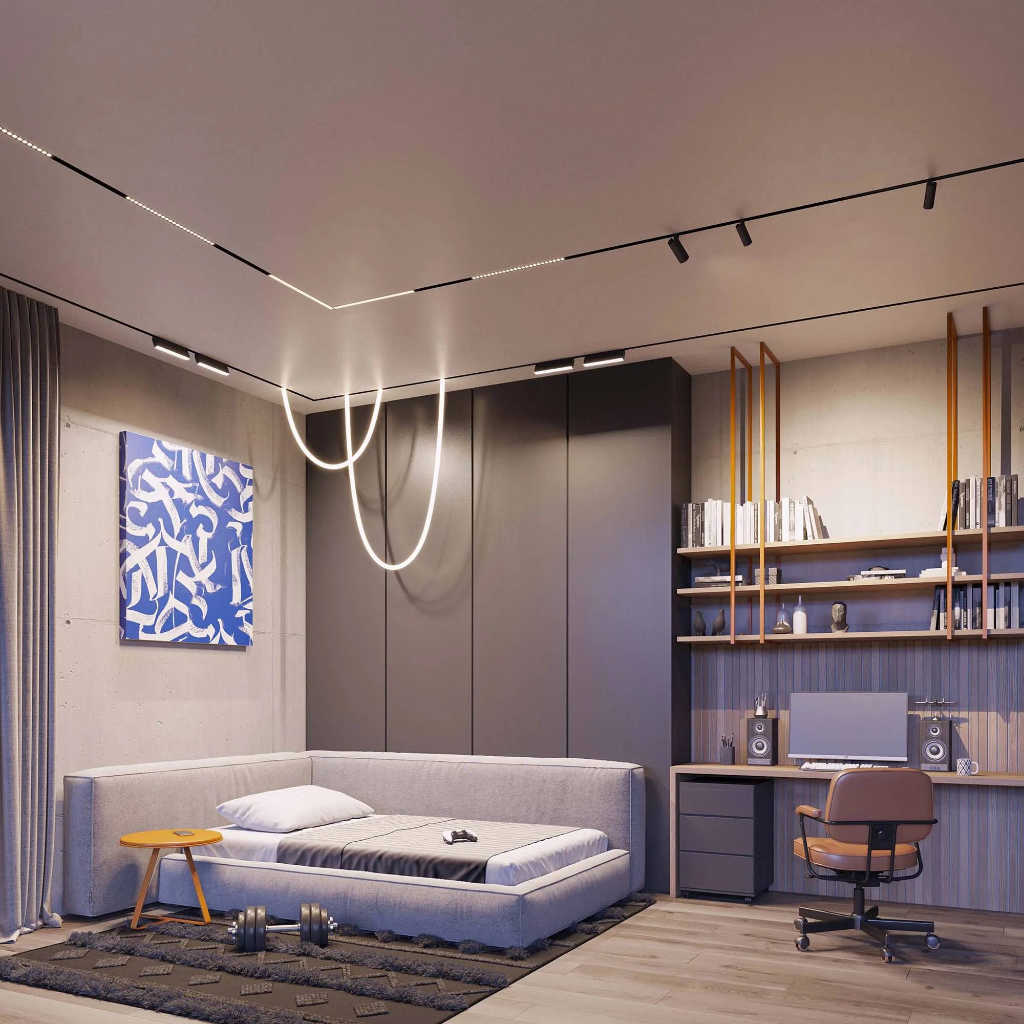 Светильник гибкий для магнитных треков серии ORIENT с управлением DALI. Мощность 70 Вт, св. поток 4550 лм, 65 лм/Вт, дневной 4000 K, CRI>90, угол 360°, напряжение питания 48 В. Матовый белый фигурный корпус из силикона с черными креплениями. Размер: диаметр 25 мм, длина 5000 мм. Монтаж на магнитный трек ORIENT. Адаптеры входят в комплект.