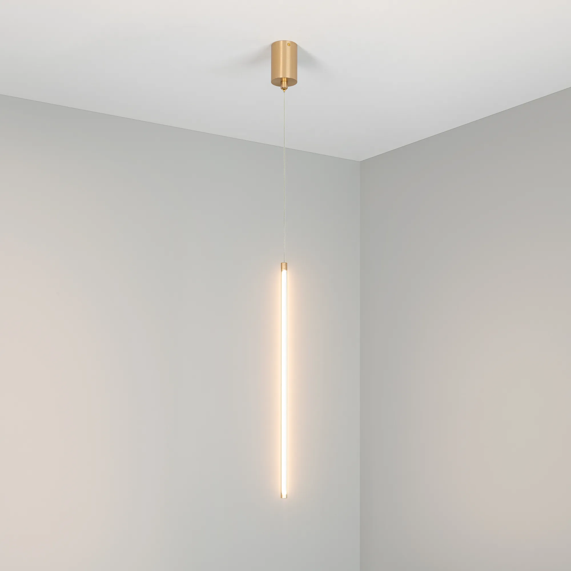 Декоративный подвесной светильник. Мощность 10 Вт, св. поток 300 лм, 30 лм/Вт, теплый 3000 K, CRI>90, угол 120°, напряжение питания 230 В. Золотой корпус из алюминия и металла, экран из силикона, степень защиты IP20. Размер: длина 590 мм, диаметр 16 мм, габариты чаши: длина 124 мм, диаметр 70 мм , длина троса 1500 мм. Монтаж подвесной. Драйвер встроенный 27-48 В, 250 мА.