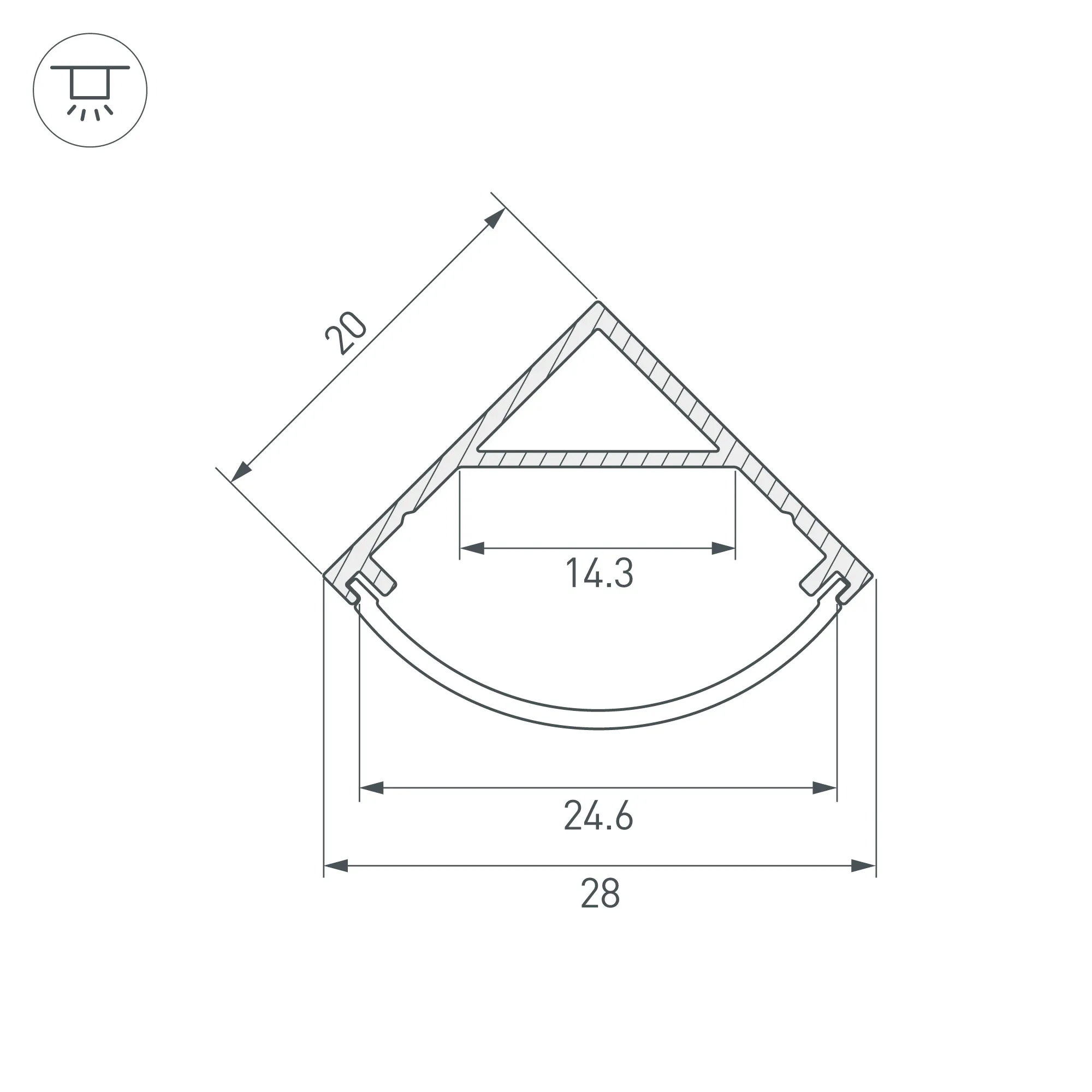 Алюминиевый угловой профиль черного цвета для светодиодных лент и линеек. Цвет - черный RAL9005 (порошковая окраска). Габаритные размеры (L×W×H): 2000x20x20 мм. Ширина площадки для ленты 14,3 мм. Экраны, заглушки и другие аксессуары приобретаются отдельно. Цена за 1 метр.