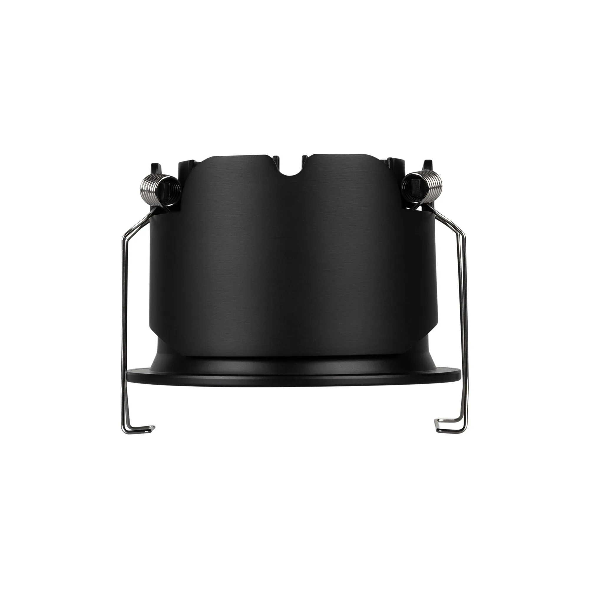 Встраиваемый светильник даунлайт. Мощность 10 Вт, св. поток 980 лм, 98 лм/Вт, тёплый 2700 K, CRI>90, угол 50°, напряжение питания 230 В. Чёрный круглый корпус из алюминия, степень защиты IP20. Размер: диаметр 82 мм, высота 53 мм. Монтаж встраиваемый, установочное отверстие: диаметр 75 мм. UGR<14. Драйвер 30-42 В, 250 мА, пульсация <2%.