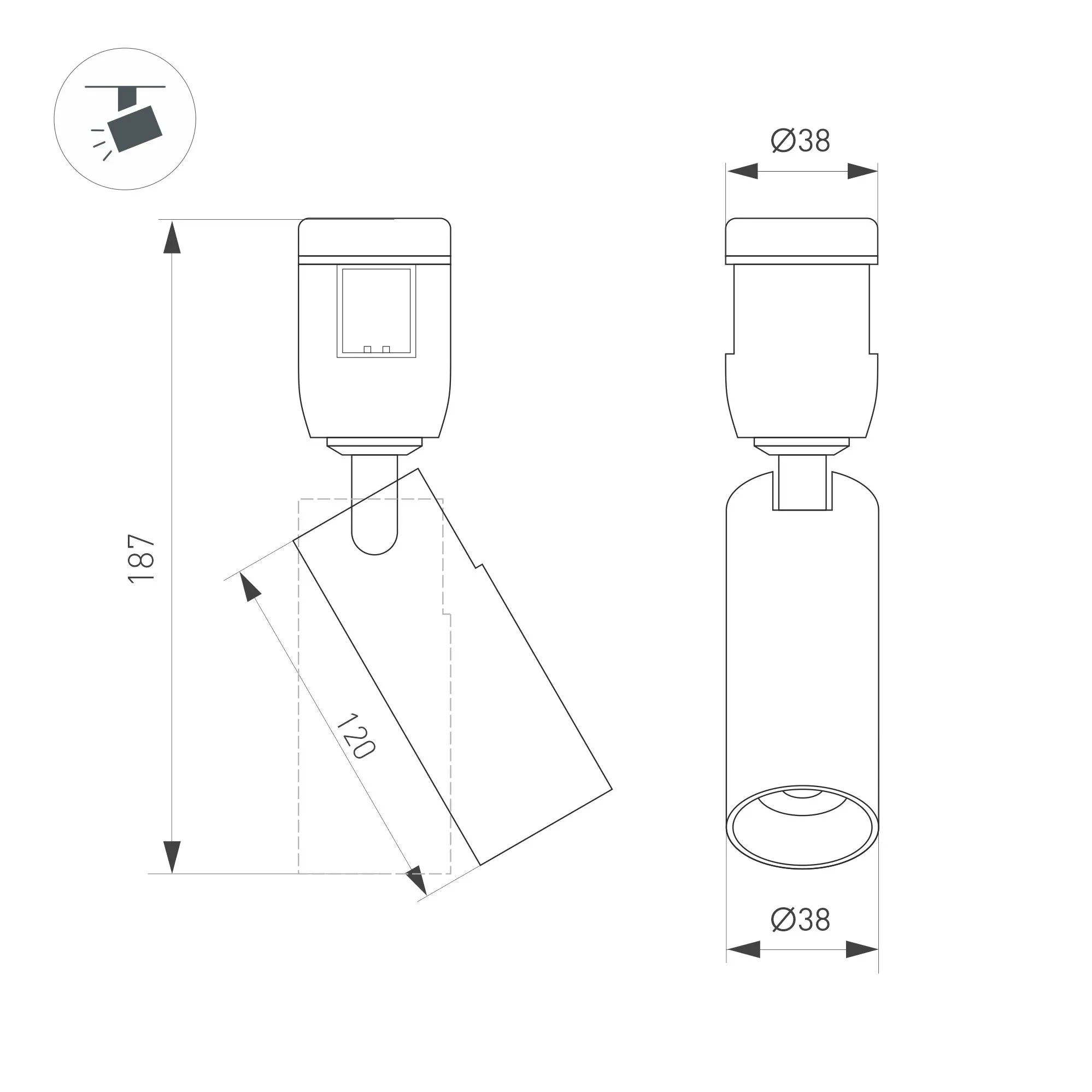 Светильник ART-APRIORI-SPOT-TURN-R38-8W Day4000 (BK, 36 deg, 48V) (Arlight, IP20 Металл, 3 года)