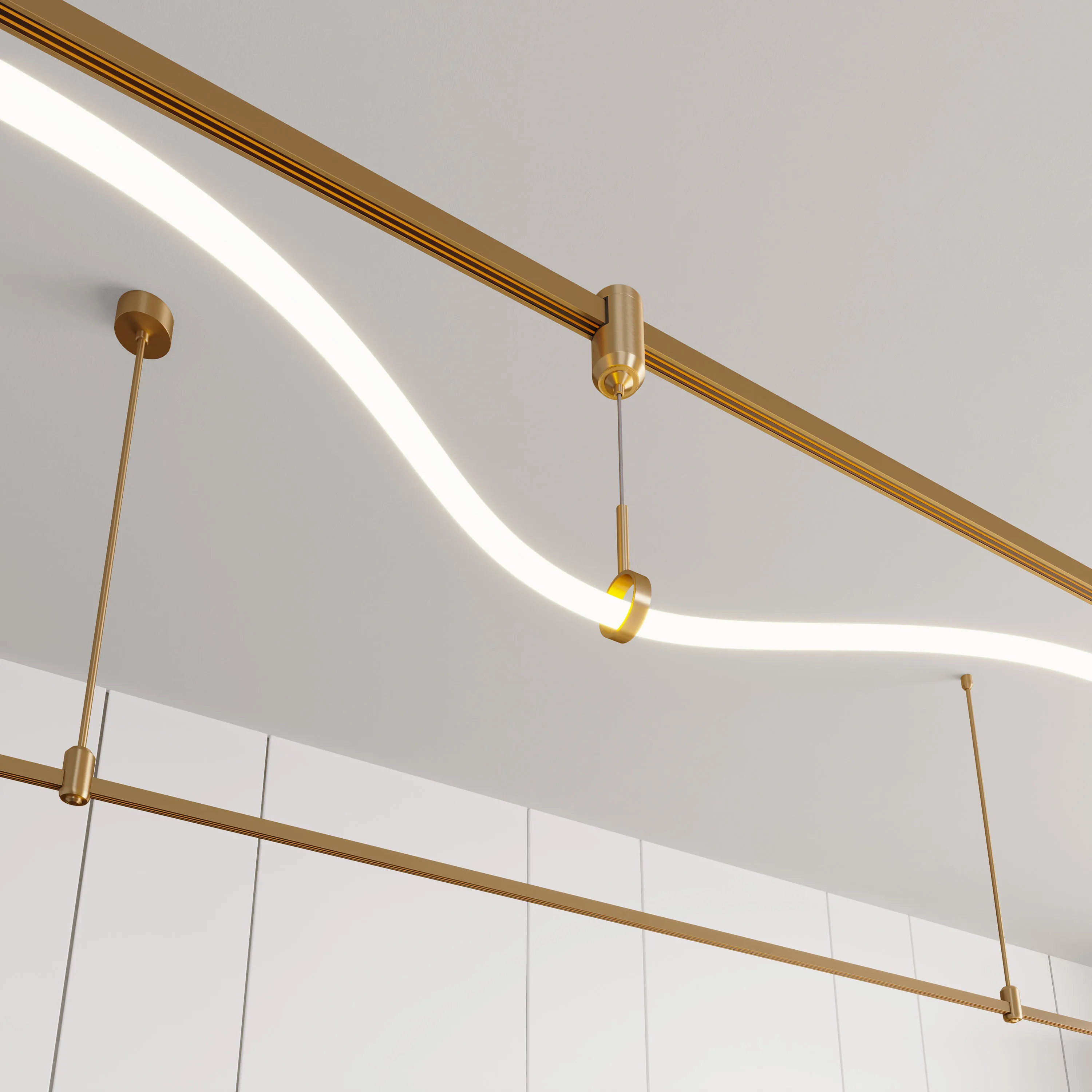 Подвес с тросом для потолочного крепления треков системы APRIORI. Не проводит электричество. Размер Ø20 х 1500 х Ø45 мм. Размер потолочного крепления: Ø20 х 35 мм, размер подвесного кольца: Ø45 х 12 мм. Материал алюминий, цвет светлое золото.