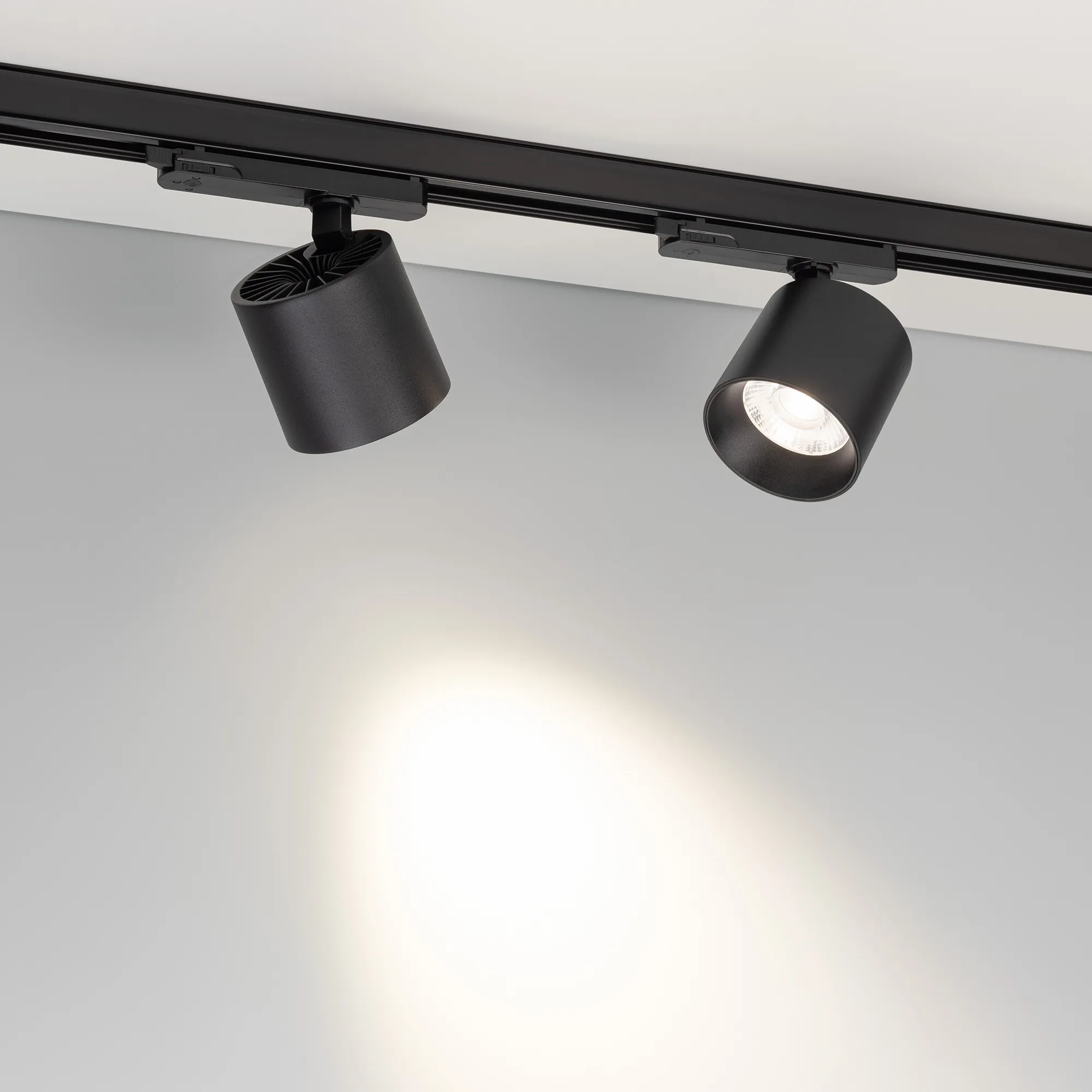 Светильник для трехфазных треков, 36 Вт. Цвет свечения ДНЕВНОЙ 4000K, световой поток 3420 лм, угол 20°, CRI>90. Корпус круглый, металл, цвет черный, IP20. Размеры Ø100x93 мм. Входное напряжение AC220-240V, мощность 36 Вт. Драйвер встроенный (24-42V, 850 mA).Пульсация <1%.