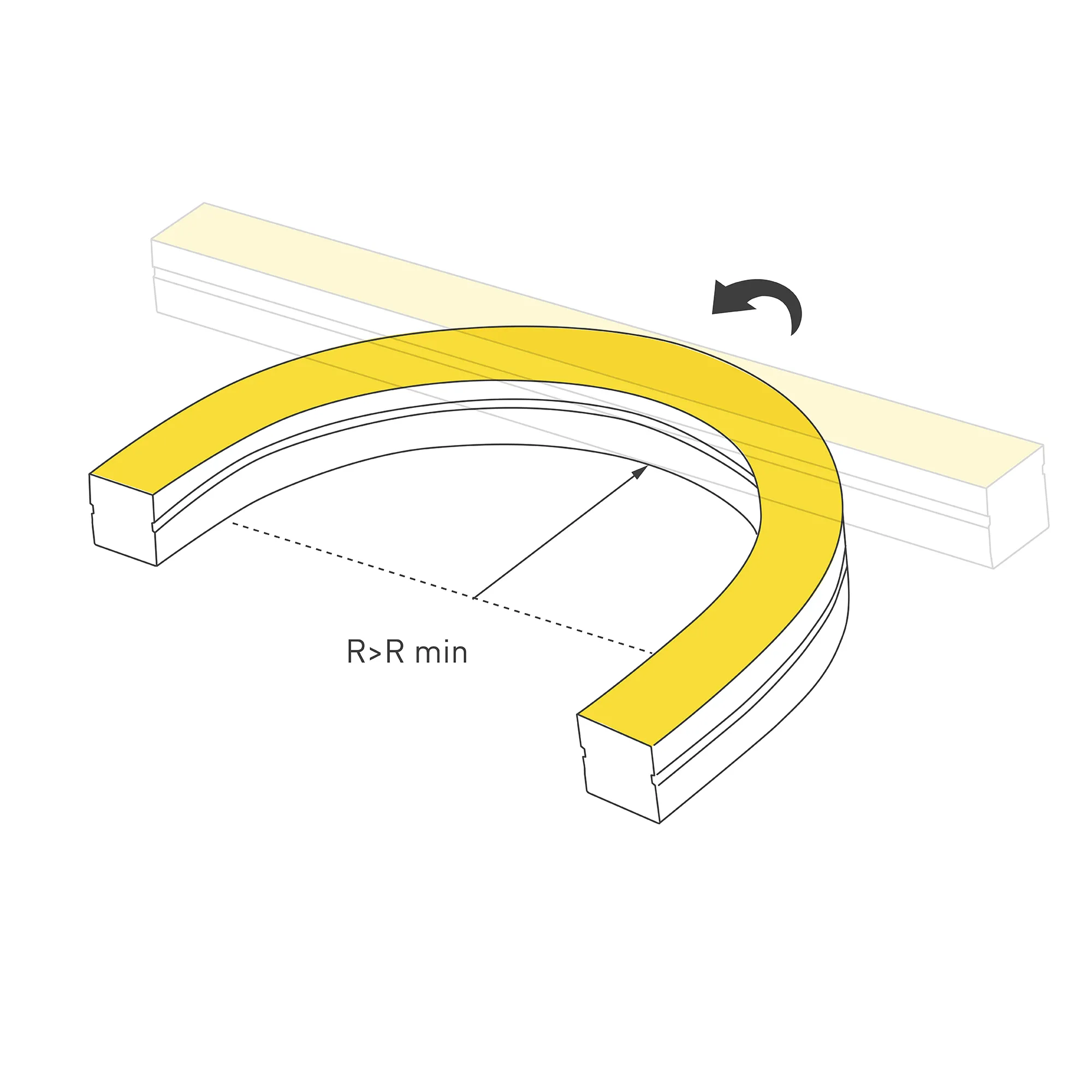 ОБРАЗЕЦ. Гибкая герметичная лента (неон серии MOONLIGHT), сечение 16×16 мм. Светодиоды CSP 280 шт/м. Цвет свечения ТЕПЛЫЙ (3000К), индекс цветопередачи CRI>90, световой поток 435 лм/м, угол излучения 114°. Мощность 10 Вт/м, питание 24 В. Класс пылевлагозащиты IP67. Размеры 500×16×16 мм. Мин. отрезок 50 мм. Горизонтальный изгиб SIDE, минимальный радиус изгиба 120 мм. Длина 50 см. Цена за 1 шт. Гарантия 5 лет.