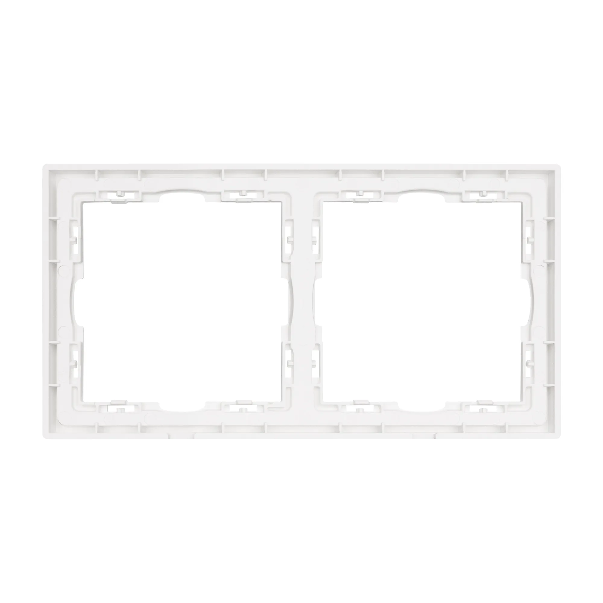 Рамка пластиковая на 2 поста, под встраиваемый механизм. Цвет - белый кварц, с Soft-Touch покрытием. Среднего уровня герметичности IP20. Ориентация монтажа горизонтальная.