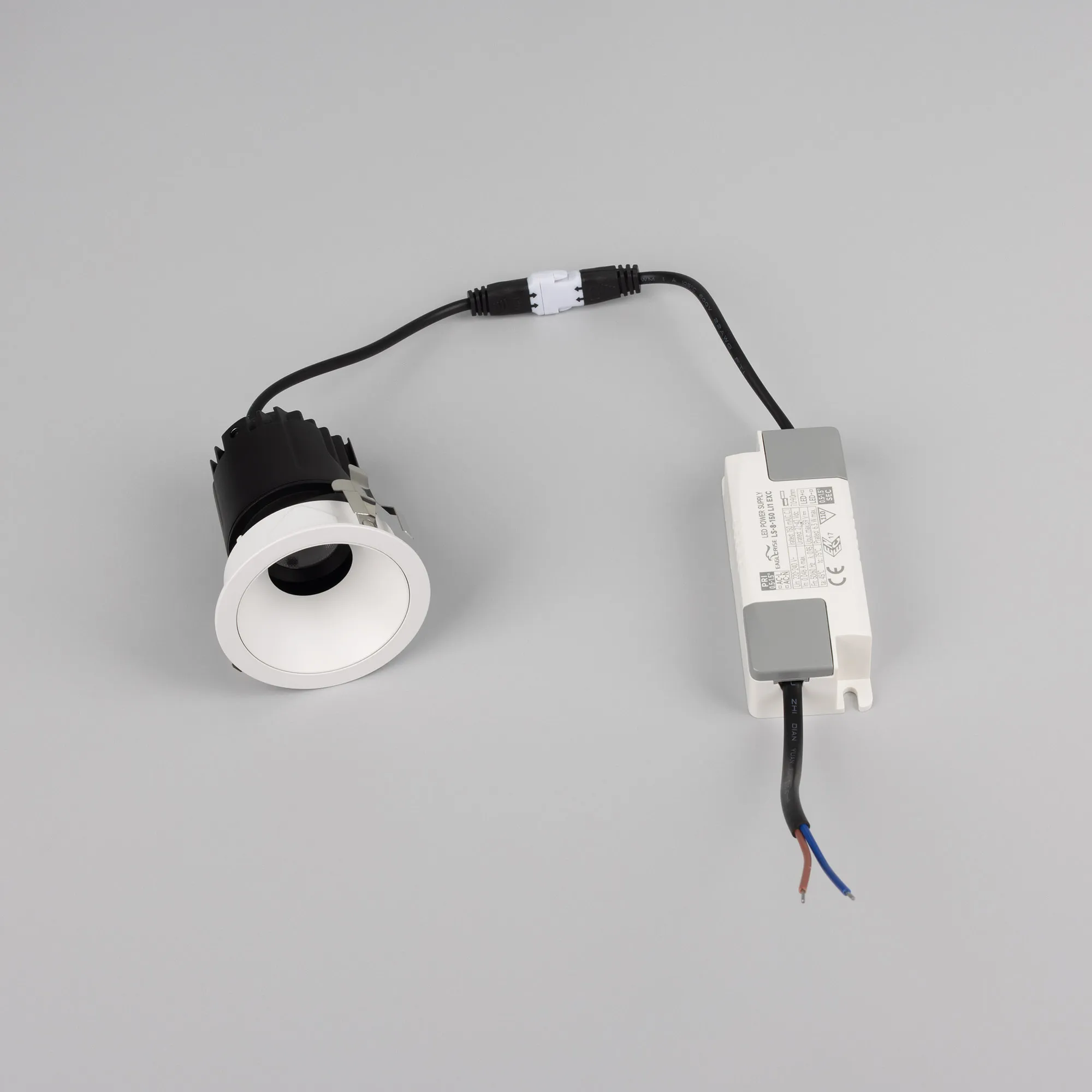 Встраиваемый светильник даунлайт. Мощность 7 Вт, св. поток 405 лм, 58 лм/Вт, теплый 3000 K, CRI>92, угол 55°, напряжение питания 230 В. Белый круглый корпус из алюминия, белый матовый отражатель, степень защиты IP20 . Размер: диаметр 62 мм, высота 72 мм. Монтаж встраиваемый, установочное отверстие: диаметр 55 мм. Драйвер, 27-42 В, 150 мА, пульсация <0,5%.