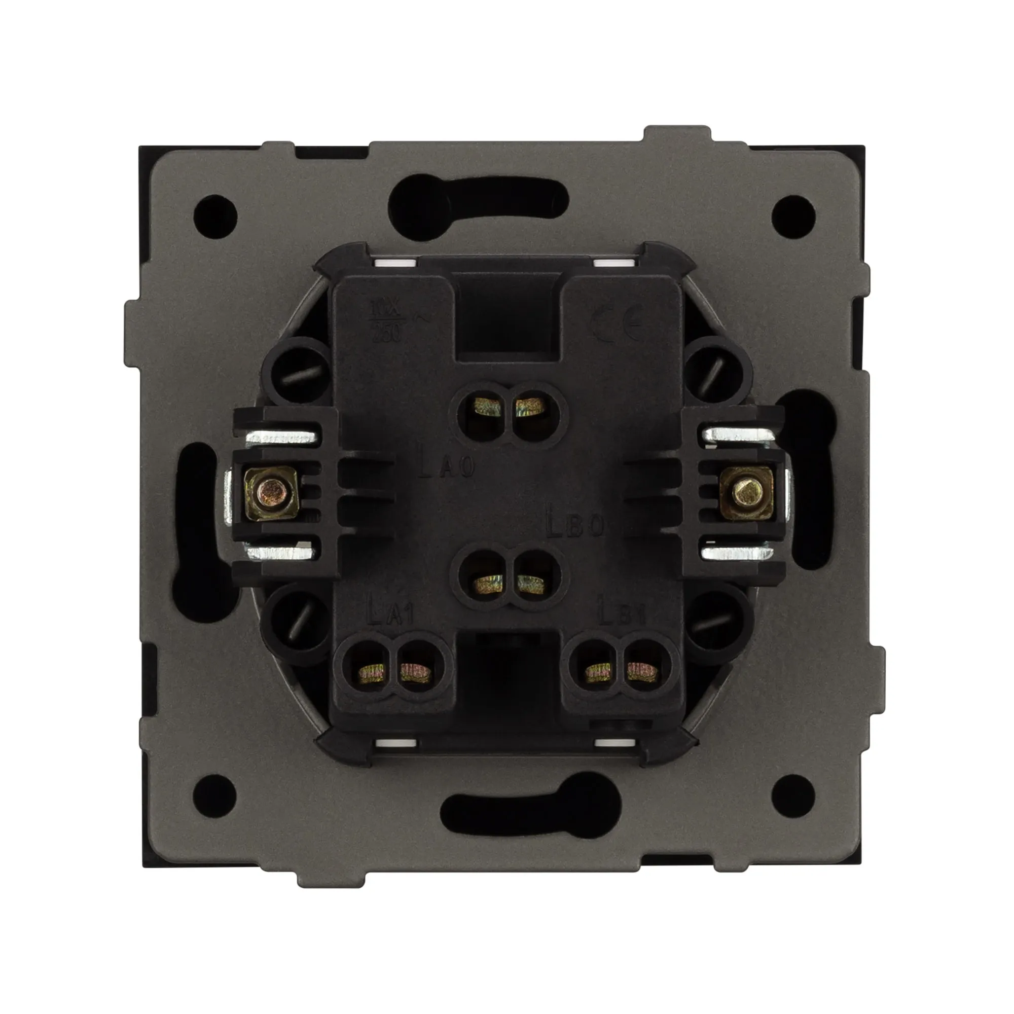 Механизм выключателя света клавишный на 1 пост 2 клавиши (непроходной). Цвет - серый, с Soft-Touch покрытием. Без фронтальной рамки. Уровень пылевлагозащиты IP20. Выключатель устанавливается в стандартный круглый подрозетник круглого сечения диаметром 60мм.