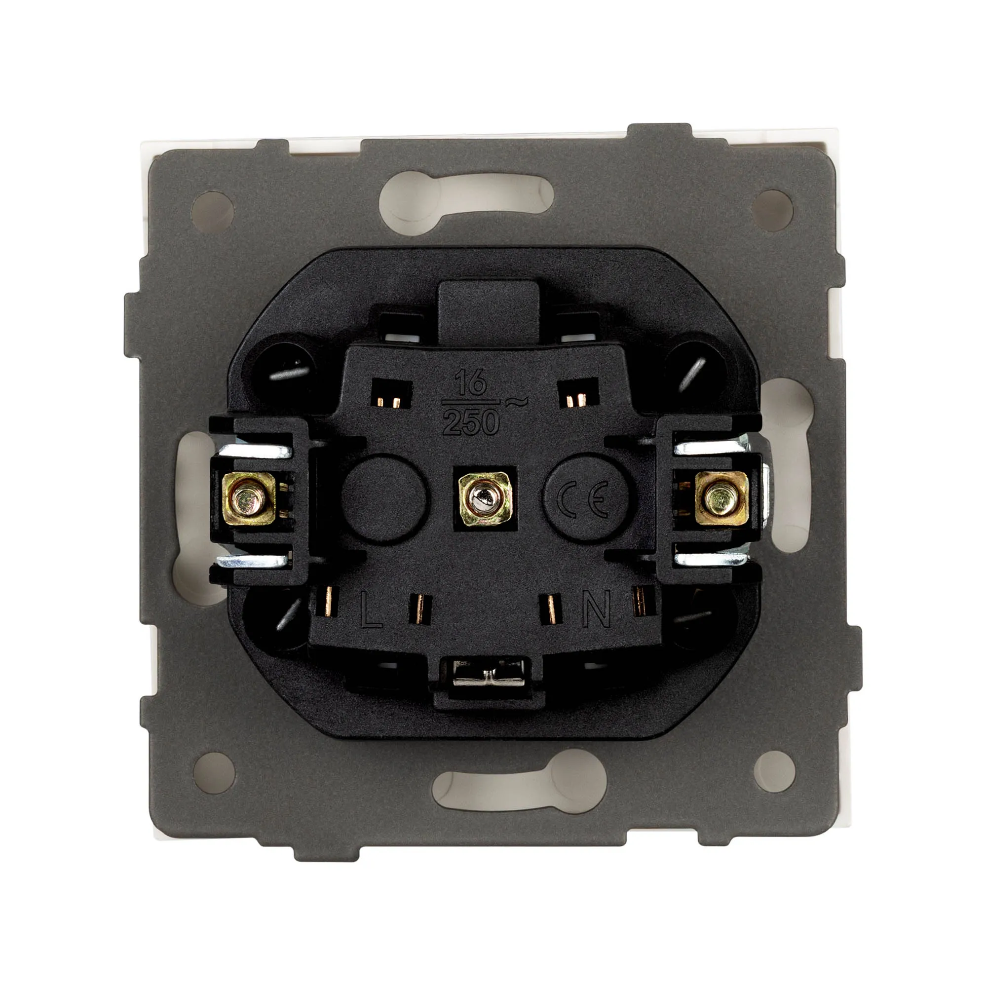 Механизм розетки с заземлением и влагозащитной крышкой на 1 пост. Цвет - матовый белый, с Soft-Touch покрытием. Без фронтальной рамки. Уровень пылевлагозащиты IP44. Розетка устанавливается в стандартный подрозетник круглого сечения диаметром 60мм.