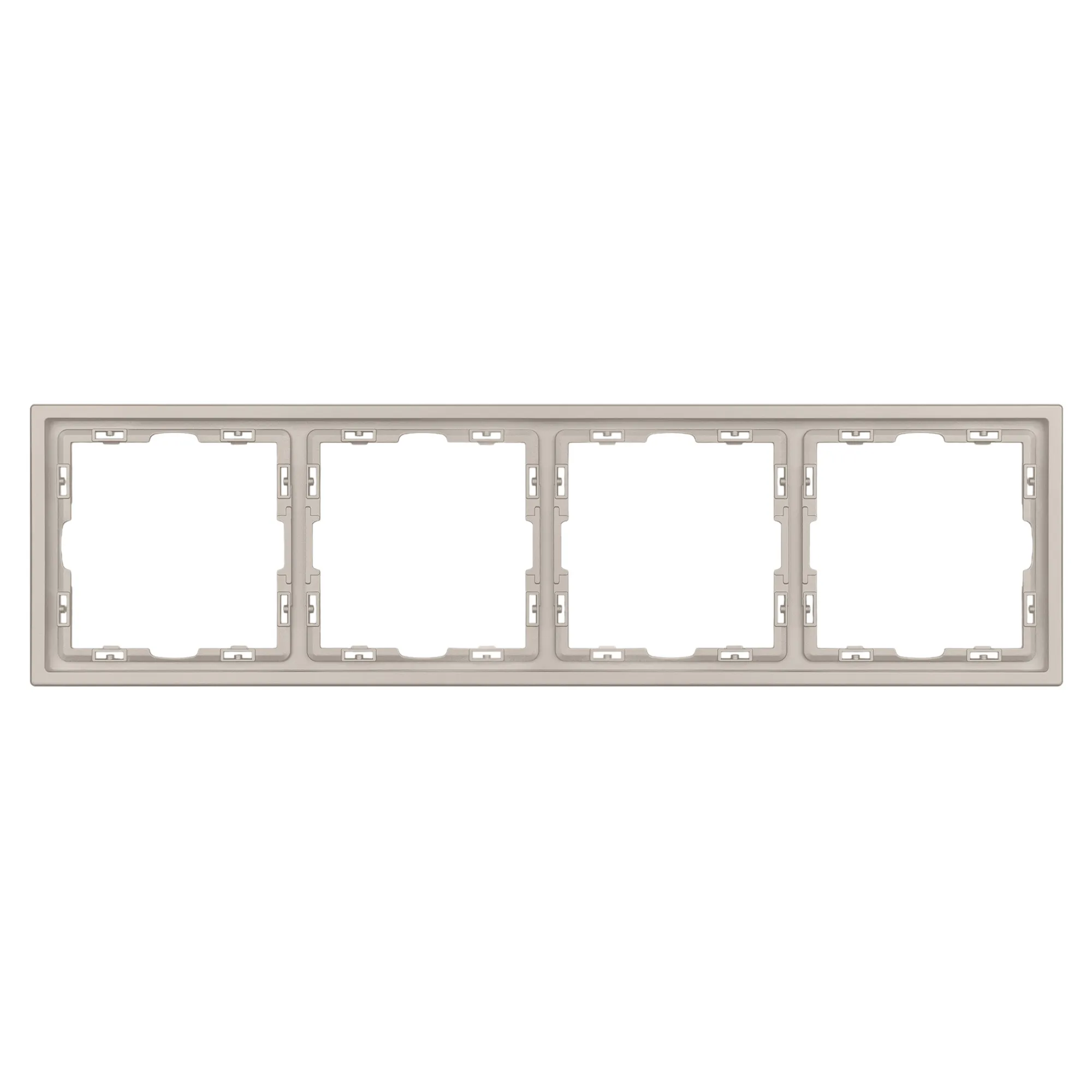 Рамка пластиковая на 4 поста, под встраиваемый механизм. Цвет - кашемир, с Soft-Touch поверхностью. Среднего уровня герметичности IP20. Ориентация монтажа горизонтальная.