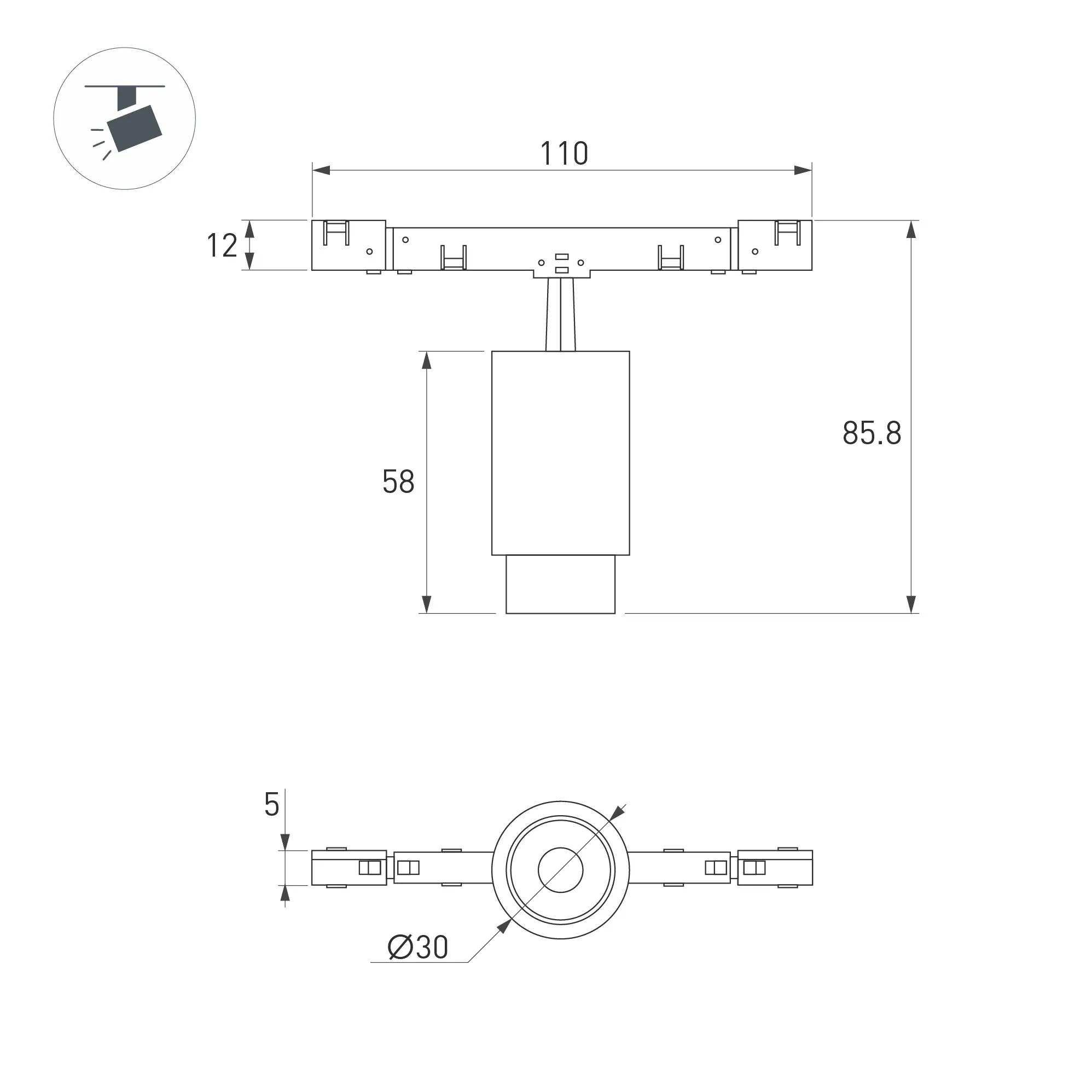 Светильник для магнитных треков MAG-MICROCOSM шириной 11 мм. Мощность 2 Вт, св. поток 130 лм, 65 лм/Вт, теплый 3000 K, CRI>92, изменяемый угол 15-45°, напряжение питания 24 В. Черный фигурный корпус из алюминия, экран поликарбонат, степень защиты IP20.Габариты общие: 110 х 30 х 84 мм, габариты светового модуля Ø30 х 58 мм, габариты адаптера 110 х 5 х 11,6 мм. Монтаж на трек MICROCOSM. Пульсация <1%.