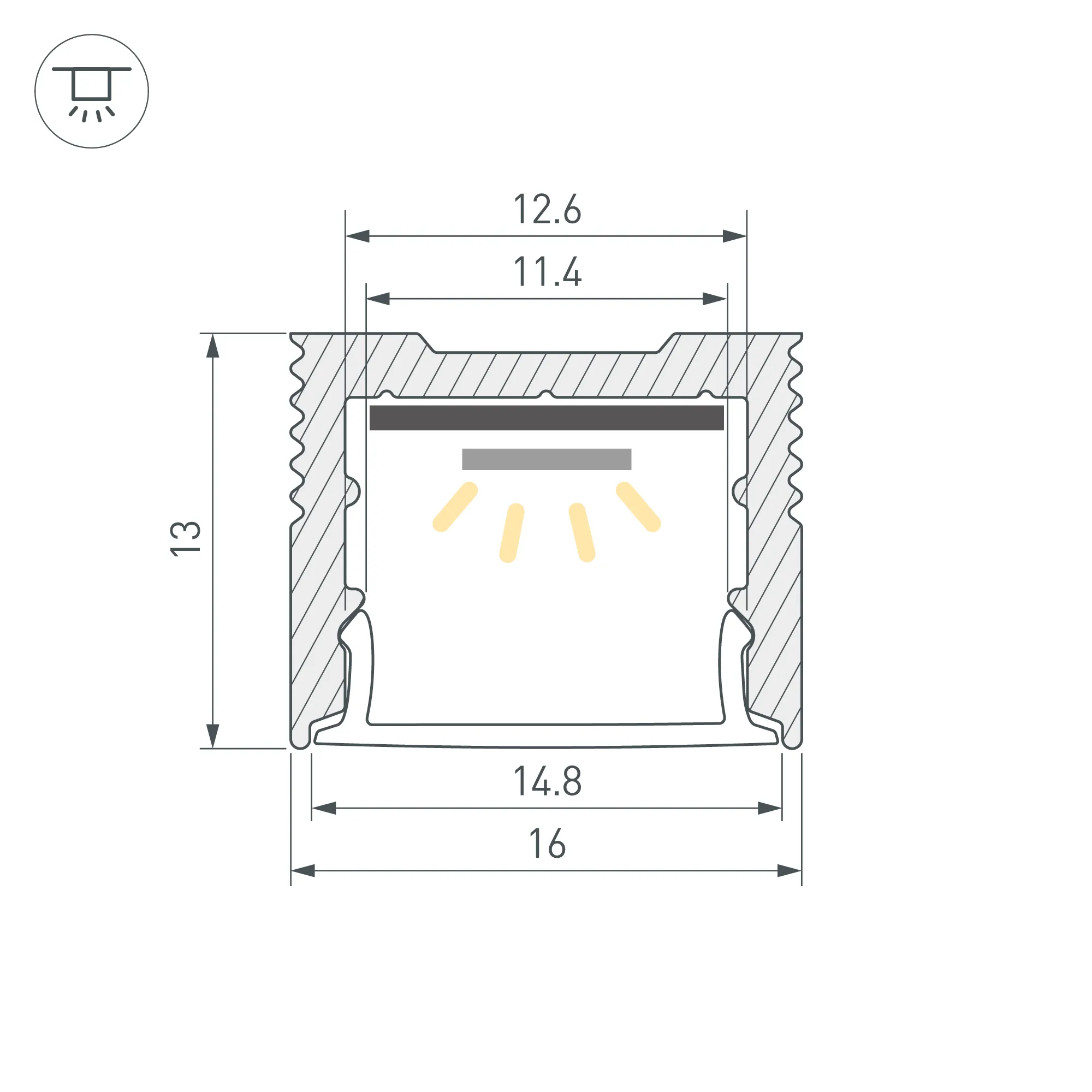 Алюминиевый профиль для светодиодных лент и линеек. Цвет - черный RAL9005 (порошковая окраска). Габаритные размеры (L×W×H): 2000x16x13 мм. Ширина площадки для ленты 12,6 мм. Экраны, заглушки и другие аксессуары приобретаются отдельно. Цена за 1 метр.